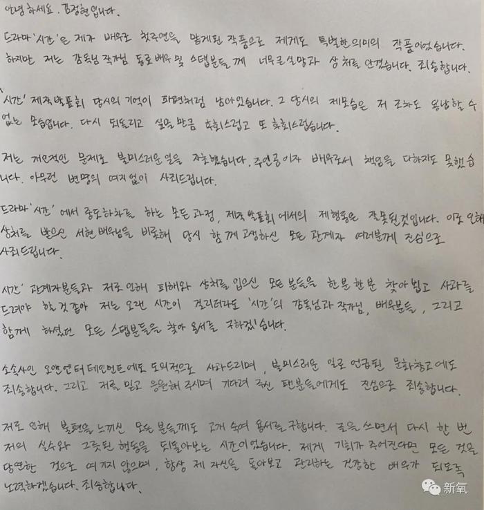 后经负责宣传的公司公布了一封手写信,来表明自己的立场,并称自己因为失眠和抑郁症再次入院治疗。