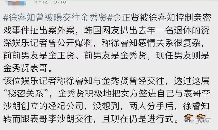 现在看来是真相大白了,据爆料称金正贤当时作为男主在拍摄的时候,正在跟徐睿知谈恋爱。