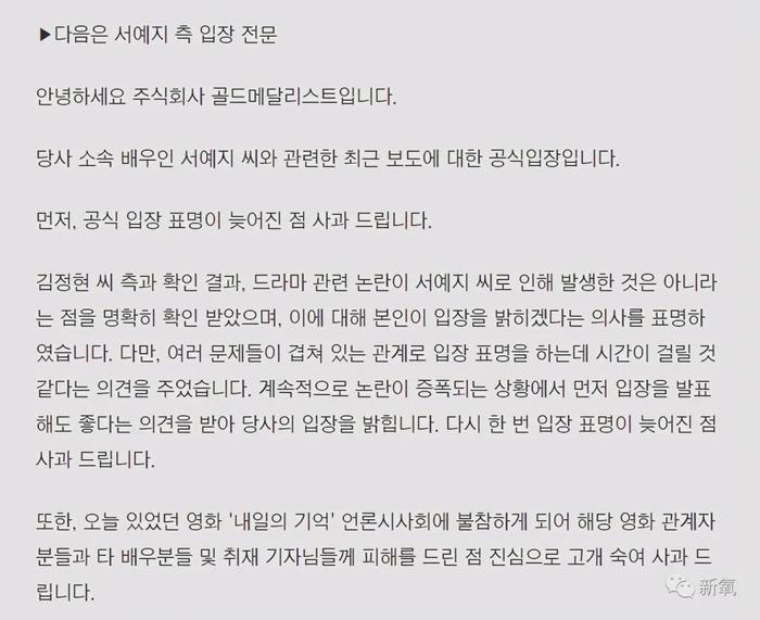 而金正贤因为跟所属经纪公司有纠纷,迟迟没有做任何声明。