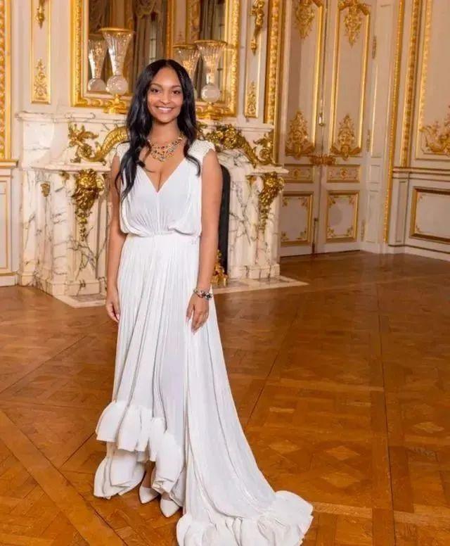 莉西·塞拉西公主是埃塞尔比亚皇帝海尔·塞拉西的曾曾孙女,虽然不是目前皇室的嫡亲公主,但确实是如假包换的皇室成员。她当天穿了一条白色雪纺连衣裙,选用了一条七彩宝石镶嵌起来的项链作装饰,冲淡了白裙子的寡淡。