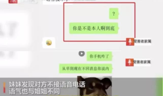 妹妹发现他不接语音电话,语气也和姐姐平日里不同,于是问:“你是不是本人?”