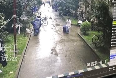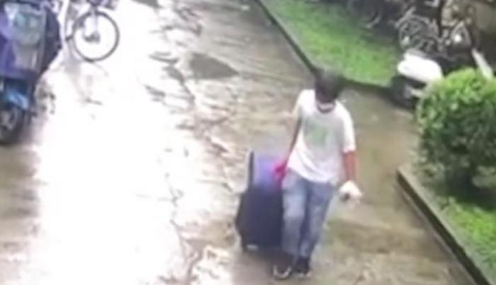 警察来后,调取了小区的监控,发现一名身穿白色T恤、手里拿着一块毛巾的年轻男子,在当天下午13:46分时,提着一个行李箱走出女生所住的楼房。