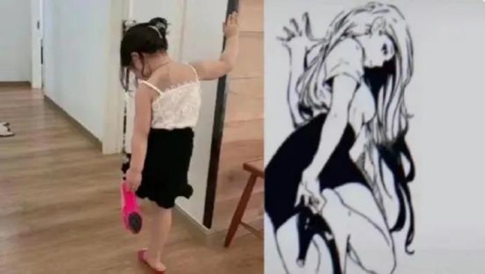 在妈妈的怒吼下,妞妞像是条件反射般乖乖站好,摆出可爱的姿态,挤出甜甜的笑容,懂事得让人心疼。