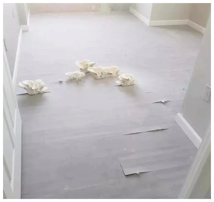 蘑菇冲破了地板,如果没有人类干预的话,恐怕不久就能长满整个房间了!