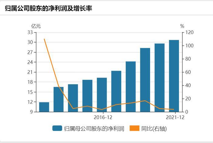 不过,公司总资产从2015年末的1651亿元增至2022年一季度末的4426亿元,收入从2015年度的57.5亿元增加至2021年度103亿元,净利润从18.64亿元增至30.9亿元。