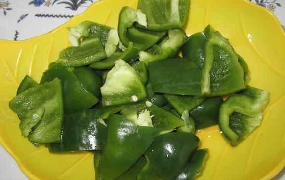 2,把青椒清洗干净,切成块,葱姜蒜清洗干净,葱切成段,姜切成片,蒜切成末备用。