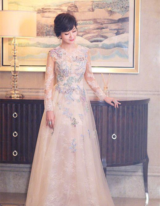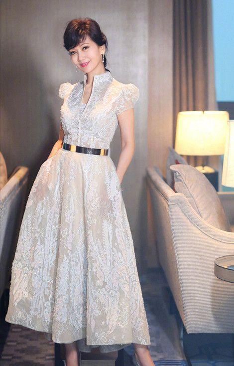 赵雅芝身上穿的的这件礼服长裙设计非常巧妙,穿在身上特备显身材、显气质,一个类似金属材质的收腰设计特别具有时尚范儿。