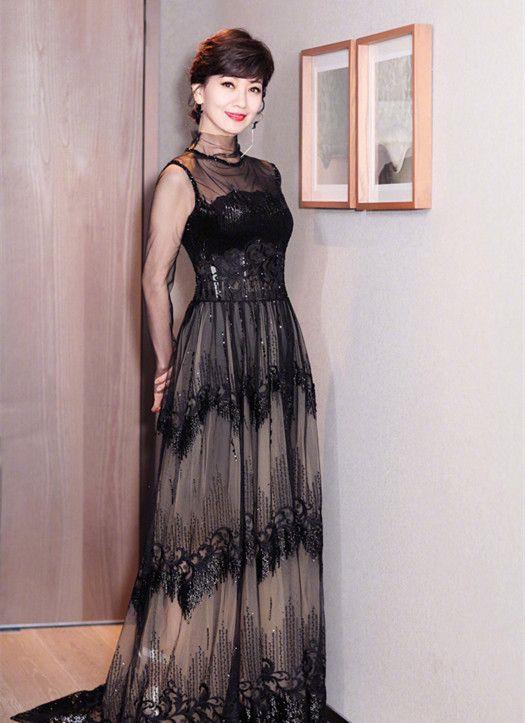 一袭黑色长裙礼服穿在赵雅芝身上十分的高贵冷艳,站在那里尽显高贵气质、端庄大气,网友:永远的女神