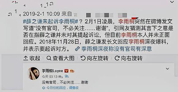 李雨桐闹得不像话,薛之谦差点起诉她,而李雨桐却回复看热闹的网友,没有官司不必关注。毕竟曾爱得那么轰轰烈烈,薛之谦还是大事化小,小事化了,之后李雨桐达到目的后就消停了不少。