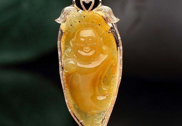 黄翡在翡翠雕刻品还有饰品当中是比较常见的一种类型,大家平时可能也都能见到,比如说笑佛挂坠,这种类型的翡翠首饰在平时出现的次数是比较多的,而且翡翠妆中黄色的部分一般来说都是从斑点或者是条脉形状分布的。而且这种类型的翡翠相对来说品质是有些松散的,并没有很高的透明度,因为绝大多数的黄翡都是在后期自然条件的影响下才产生的。