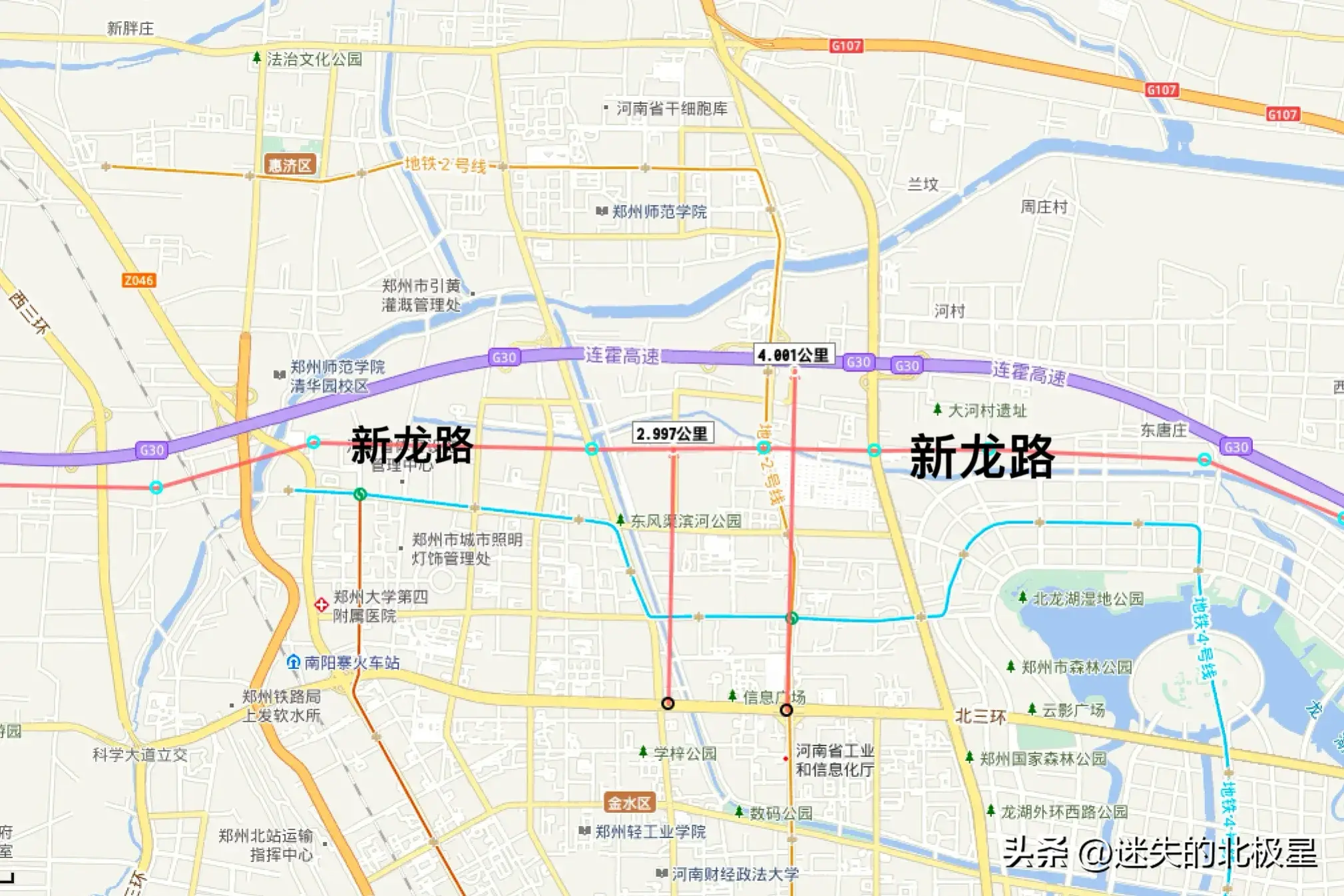 连霍高速距北三环的距离恰好是4公里,接近南三环与南四环间距,比较符合等距原则,这样以来,大河路顺理成章成为北五环。