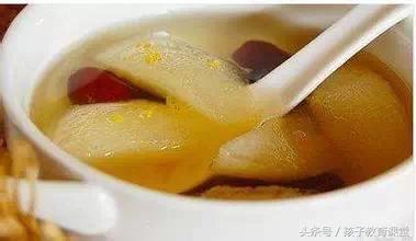 做法:将雪梨切开两半,中间挖空,将象牙丝放中间。隔水炖。喝水,也可连肉吃。