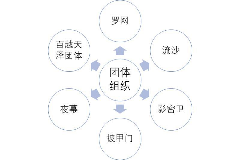 组织由“四凶将”和“百鸟”等组成。