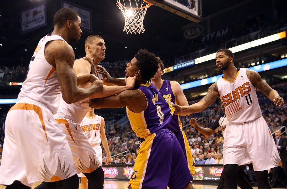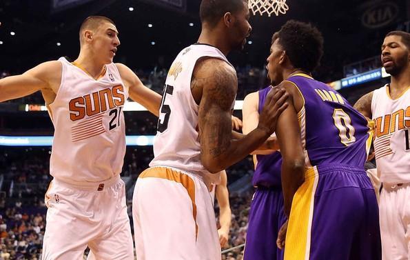 在科比第二次严重受伤那一赛季,尼克杨挑起了球队进攻的大旗,在一场与太阳队的比赛当中,尼克杨飞身暴扣被对方中锋空中打脸恶意犯规倒地,这是一次非常危险的犯规,尼克杨险些职业生涯报废,起身后气不打一处来,直接冲着对方大中锋一拳,毕竟是后卫的身体怎能招架中锋的推搡,况且,对方5名球员立马围了上来,将尼克杨团团围住进行扭打,尼克杨毫不示弱,从他眼神里能知道他希望自己的队友能过来帮他,但是湖人队其他球员犹如一盘散沙,没人过去帮助尼克杨,现场画面显得好忧伤!