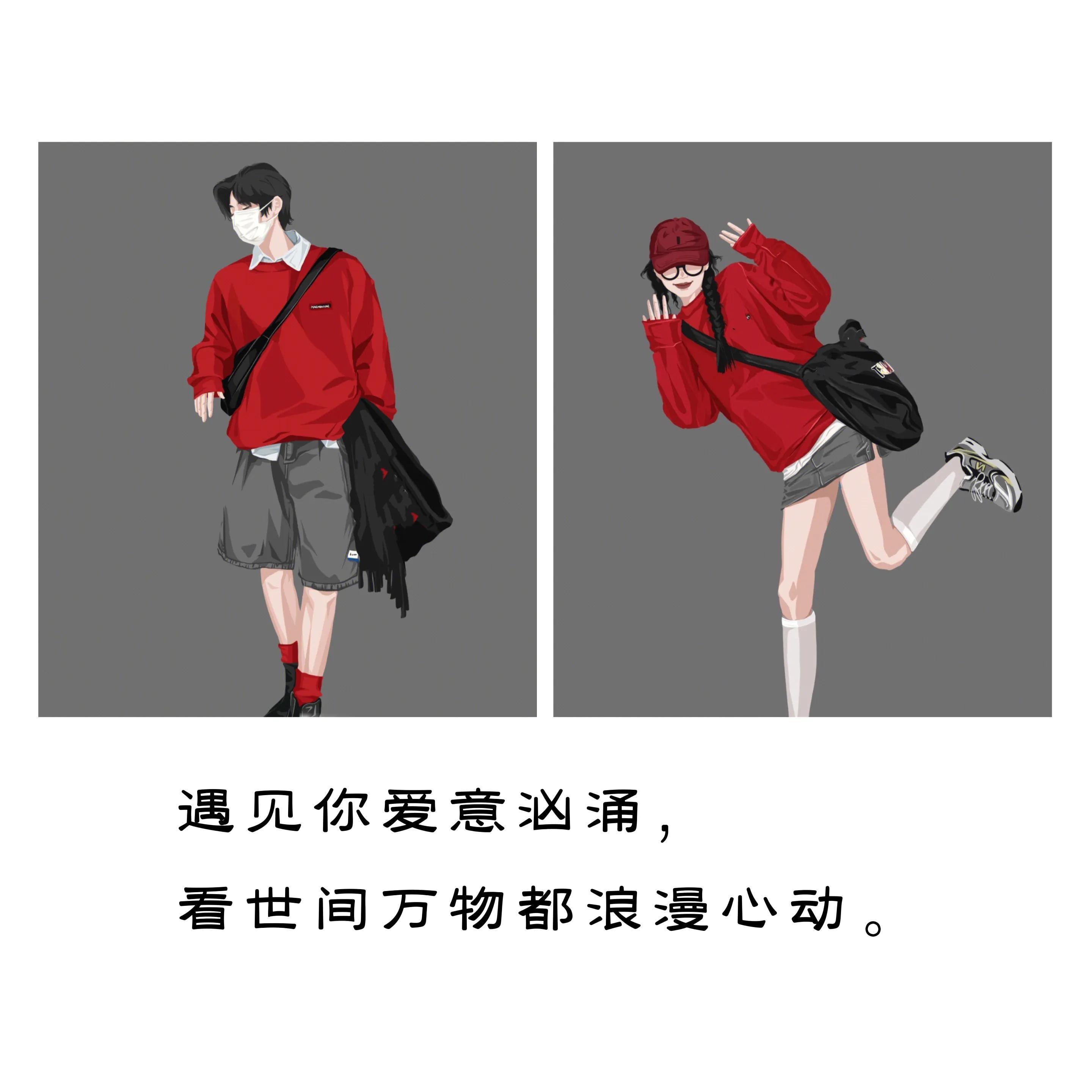 一组红色系列的情侣头像
