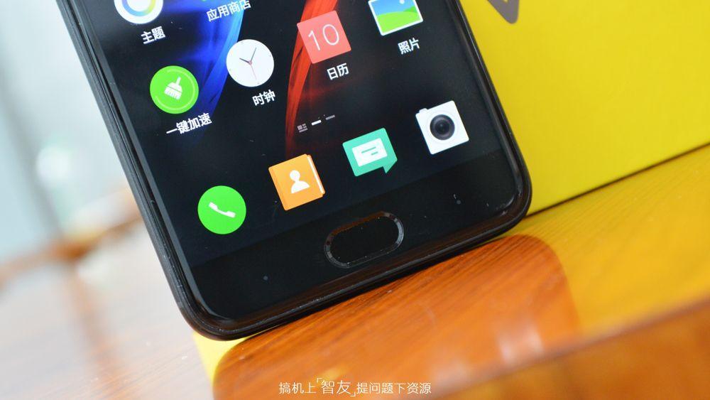 依旧保留了安卓机的虚拟键,中间是不可按压的home指纹识别键。