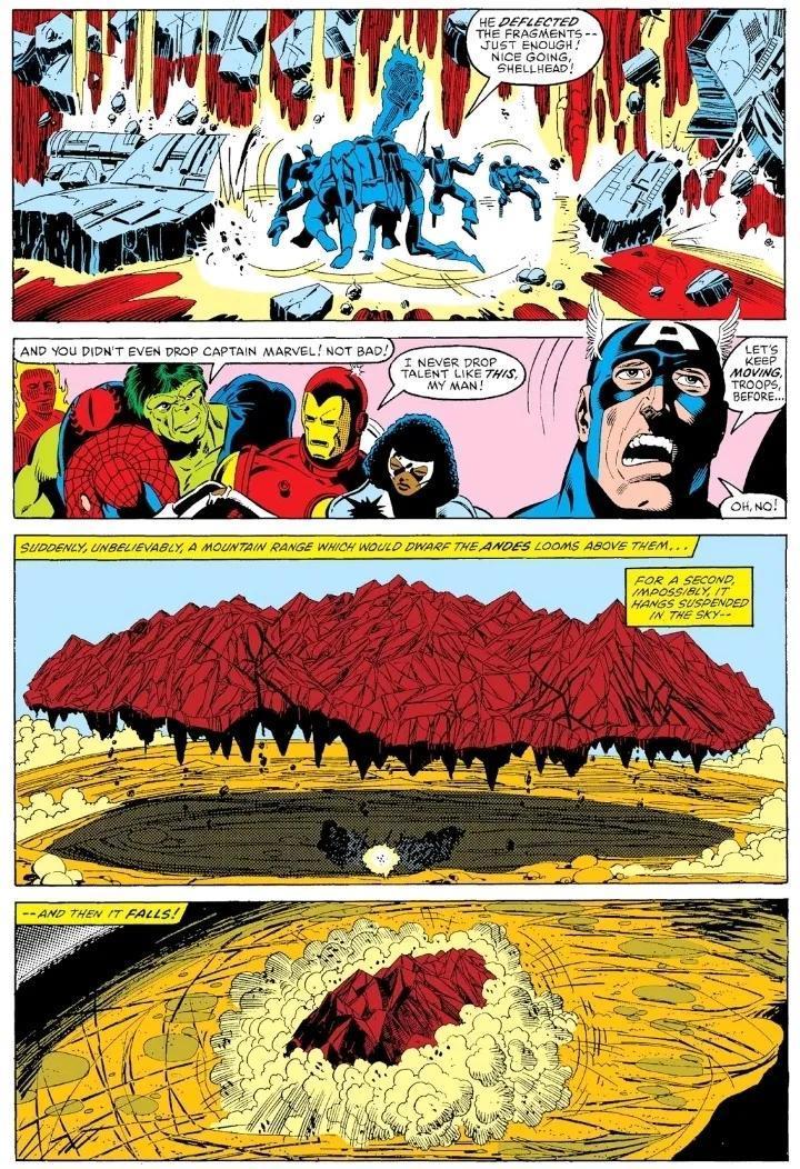 分子人使用能力把整座山扔到英雄们头上。