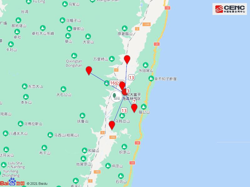 周边县城:震中距光复乡3公里、距丰滨乡7公里、距凤林镇13公里、距瑞穗乡13公里、距万荣乡16公里,距花莲县44公里,距台北市156公里。