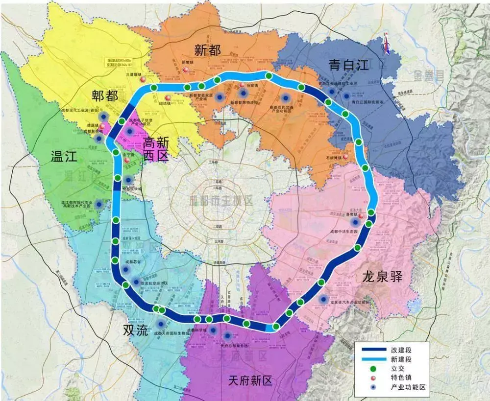 成都五环路串联衔接成都“东进”“南拓”“西控”“北改”“中优”区域,建成后可实现城市组团快速连接,有效连接成都各二圈层,弥补绕城高速与第二绕城高速之间距离过远又缺少高等级环线的问题,对成都城市整体形象有重要意义。