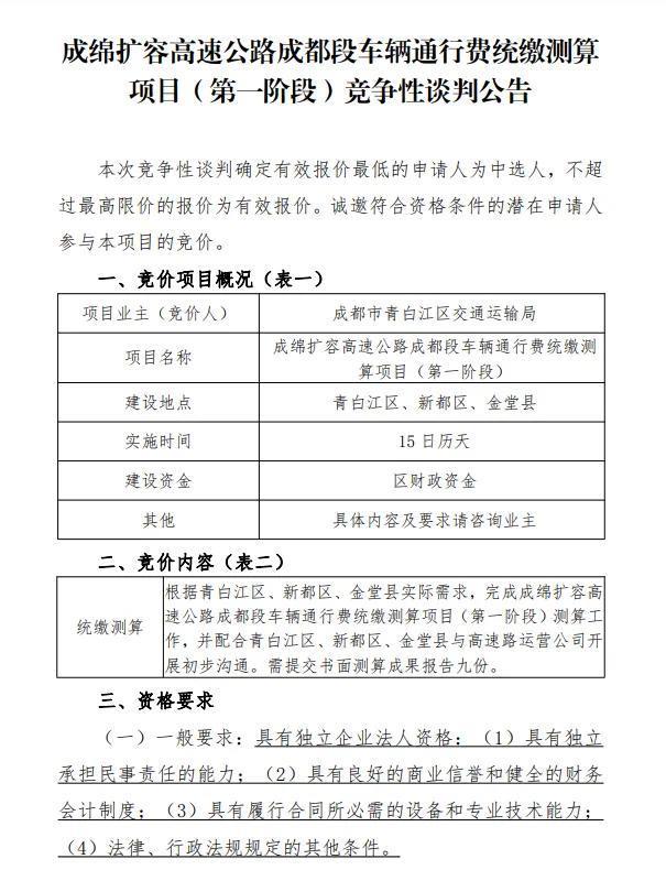 前段时间,青白江交通运输局发布了成绵第二复线统缴测算竞争性公告,意味着新建高架高速公路成都段或将和成温邛高速和绕城一样,免费对川A和川G通行,若落地施行,这将大利青白江和金堂的出行。