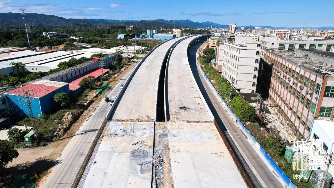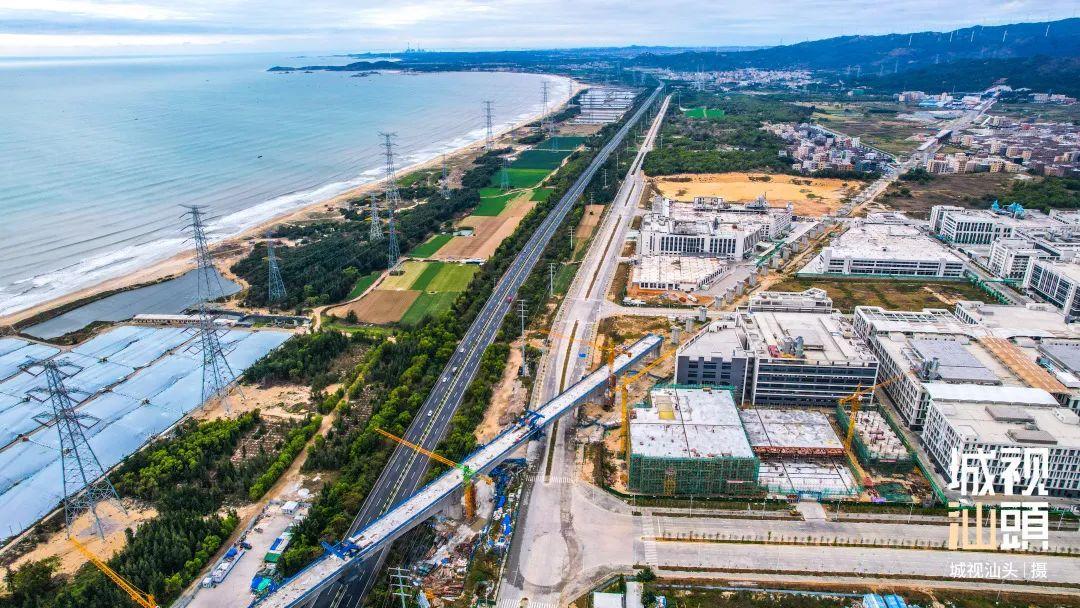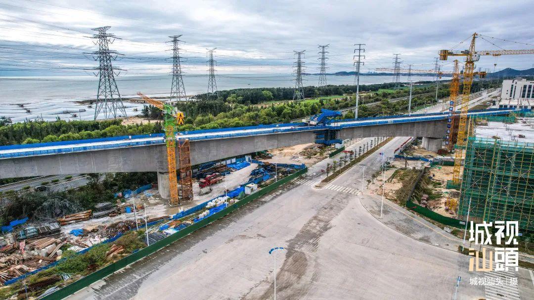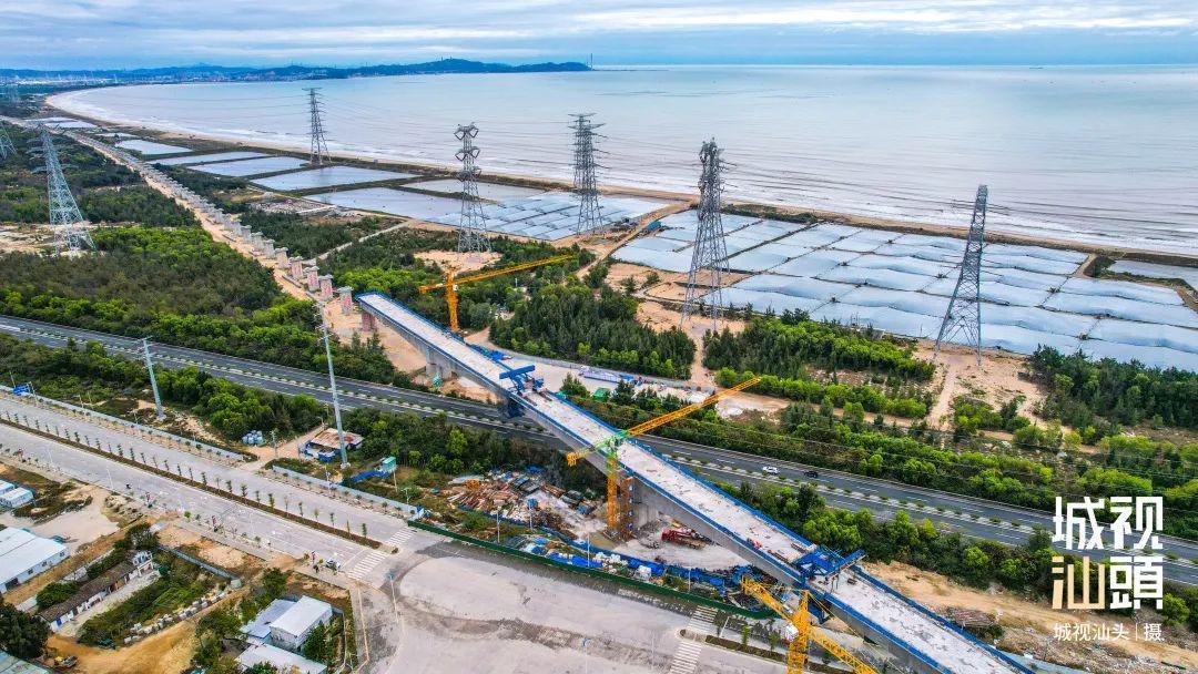 潮南段上跨沈海高速公路,去年底该特大桥连续梁已顺利合龙。