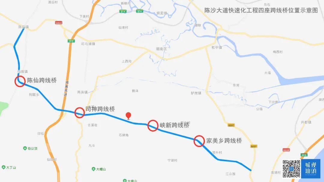 ⊙ 陈沙大道快速化工程四座跨线桥位置示意图