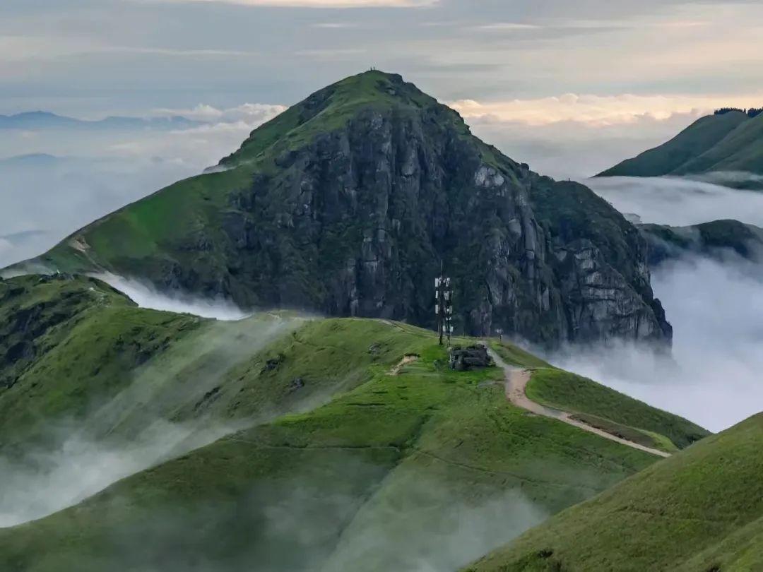 42. 江西吉安武功山景区,位于江西省吉安市,是一个集自然风光和人文景观于一体的风景名胜区。这里有雄伟的山峦、壮观的瀑布和古老的寺庙等景点,让人心旷神怡。