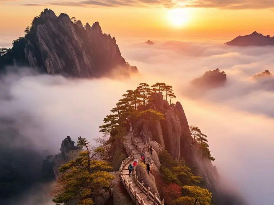 8. 安徽黄山:被誉为“中国山水之雄”,以其奇松、怪石、云海、温泉四绝著称。
