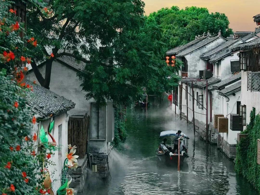 53.江苏苏州周庄古镇景区,位于江苏省苏州市境内,是一个拥有千年历史的江南水乡。古镇以水道交错,桥梁纵横而闻名,完好地保留了明、清时期的建筑风貌。在这里,您可以乘船漫游,感受水乡的韵味,也可以在古色古香的街巷中漫步,品味浓厚的江南文化。