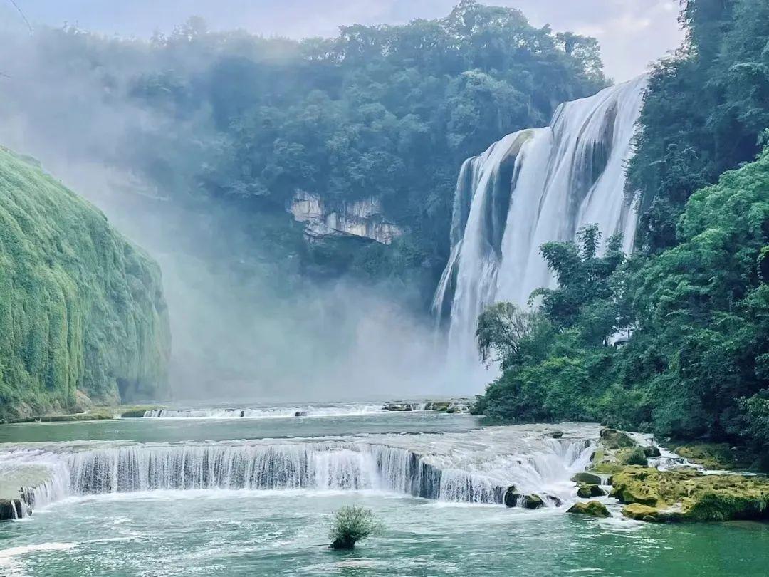 10. 黄果树瀑布:位于贵州安顺市镇宁布依族苗族自治县,是中国最大的瀑布,也是世界上最著名的大瀑布之一。