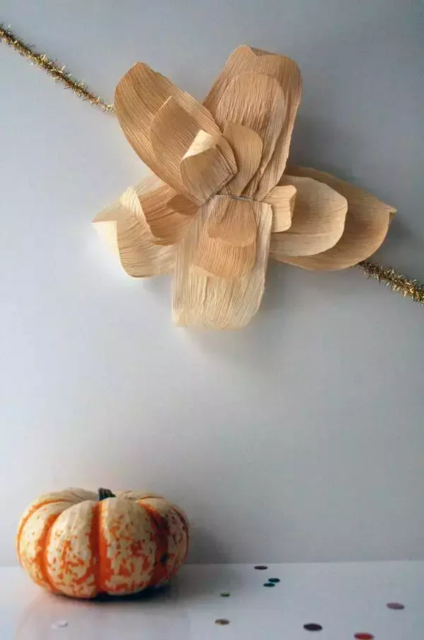 将玉米皮按照长短拼接围绕在一起,就可以做成一个花环,颇具异域风情。