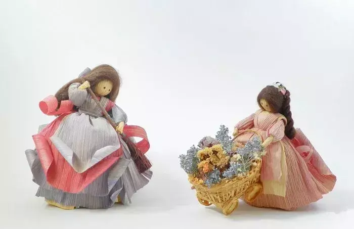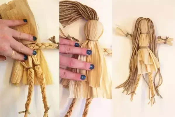 长长的头发,长长的裙子,玉米皮都可以巧妙完成。
