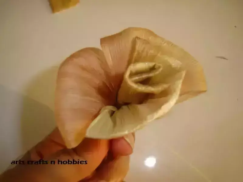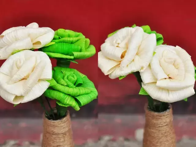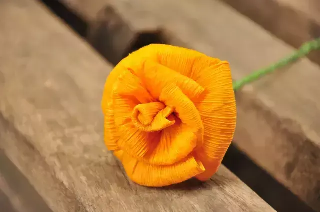 最后,利用玉米皮原有的形状和弹性将其拨开,就能看到一朵漂亮的玫瑰了。