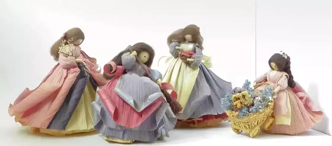 层层分明的玉米皮加上协调的比例划分,再涂上漂亮的颜色,以玉米皮为主要材料,还可以做出很多玩偶人物,玉米皮易上色的特点,为玩偶开发增加了更多的可能性。
