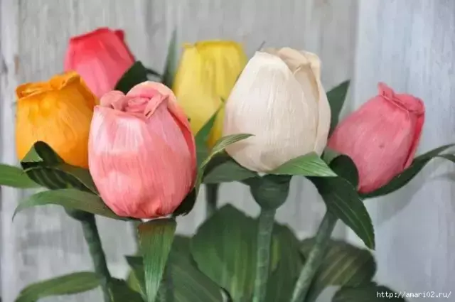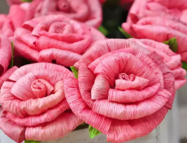 老师们还可以试着制作下图的玫瑰,含苞待放,用它们做摆件,简直秒杀所有摆件~随手摆上一些色彩缤纷的玉米玫瑰,让人赏心悦目。