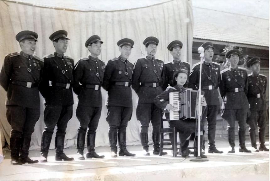 三、文工团、体工队、军乐团(队)礼服:男礼服改为西装式单排三粒扣,扎领带。女礼服上衣改为西装式单排二粒扣,扎领带。下衣裙子改为旗袍式裙,冬季穿长裤。其用料与校尉官礼服同。