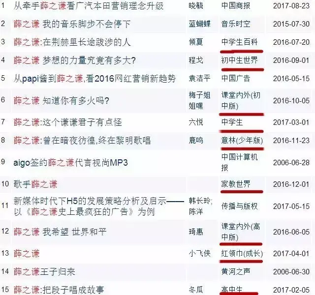 当笔者在知网上搜索有关薛之谦的文章时,惊讶的发现,相关来源基本都是中小学生读物。