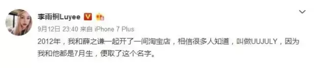 2012年,薛之谦和李雨桐合作开淘宝店。