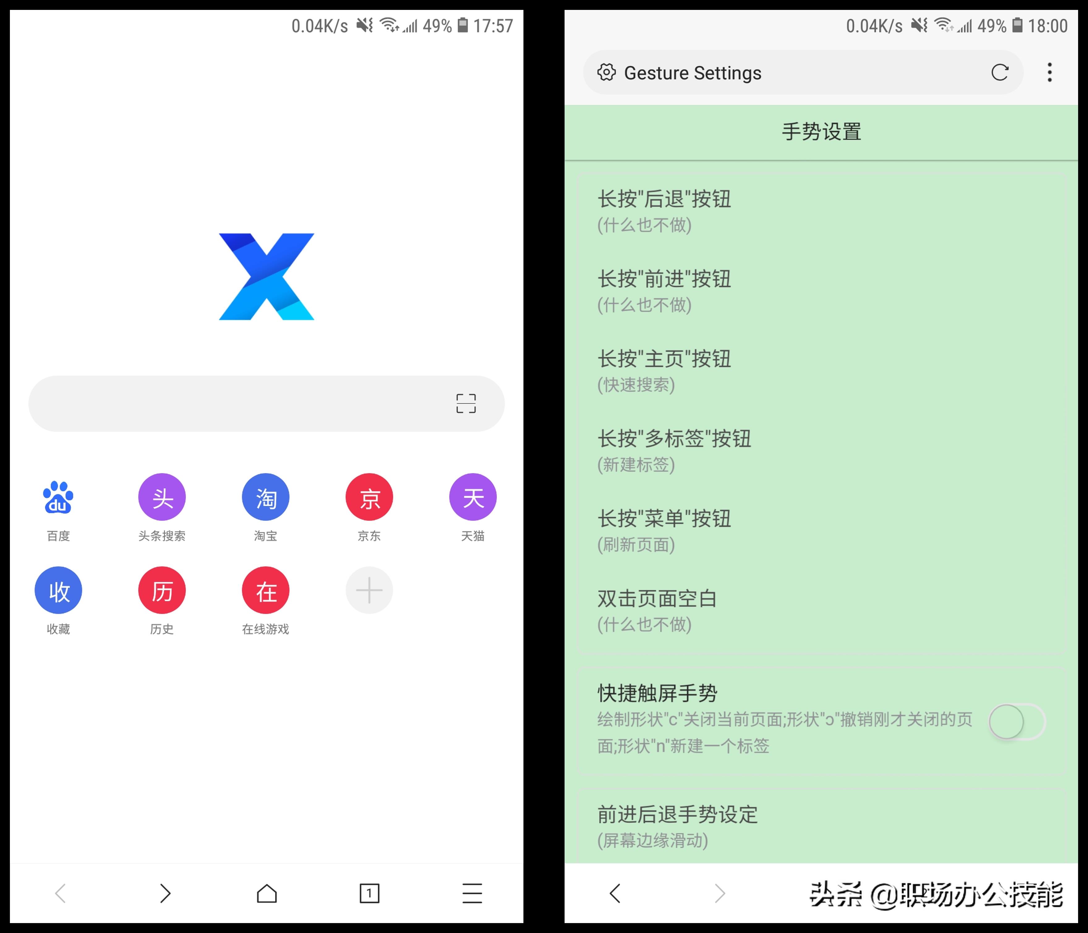 手机浏览器我之前推荐过很多,比如via、alook、夸克,其实这款X浏览器的功能,比via更加丰富,界面更简洁!除此之外,还有更多的手势选项,操作起来更加的方便。