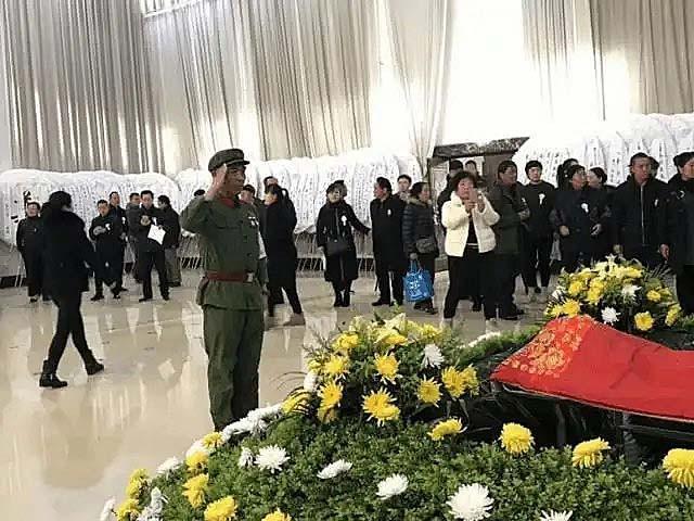 他们身着昔日的军装,肃立在老将军的遗体前,向他敬礼默哀。