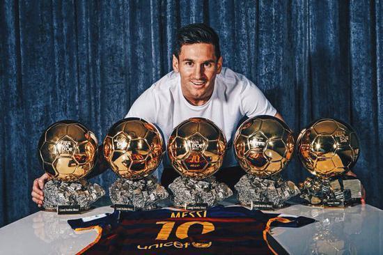 梅西是当今世界足坛历史上第一位在三项大奖评选中至少5次获奖的球员。到目前为止,梅西总共获得了5次金球奖、5次最佳射手和6次联赛最佳球员的荣誉。