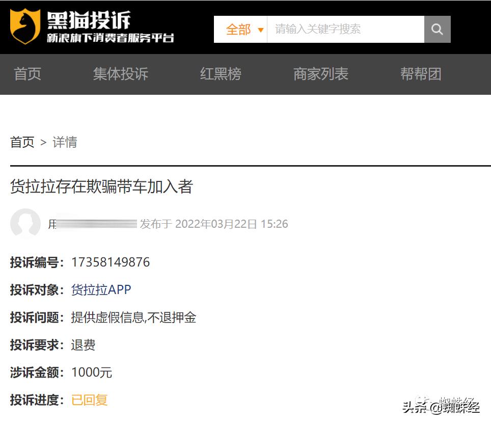 近几年,人社部一直不断强调新业态劳动者保障,骑手、网约车司机等皆在其列。2021年11月10日,货拉拉也宣布成立“司机权益保障委员会”,如今过去5个多月,效果如何?4月14日,蜘蛛经在黑猫投诉平台搜索“货拉拉”, 结果显示有15868条,具有讽刺意味的是,司机投诉居然占了绝大部分。