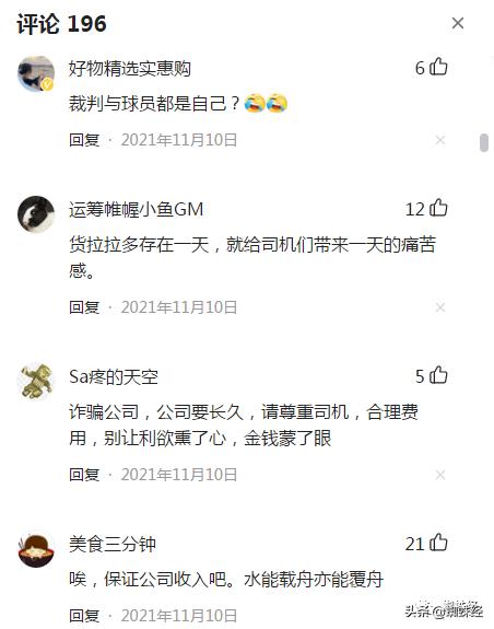 网友“Sa疼的天空”:诈骗公司,公司要长久,请尊重司机,合理费用,别让利欲熏了心,金钱蒙了眼。