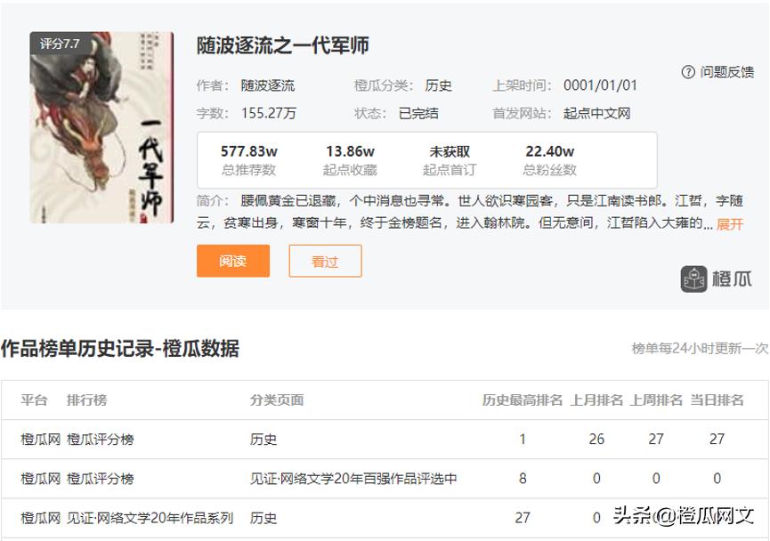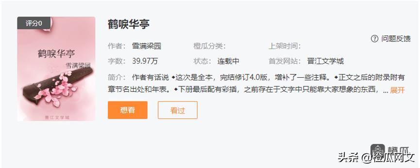 下面说说橙瓜数据上表现较好的四部权谋小说,你看过哪本呢?