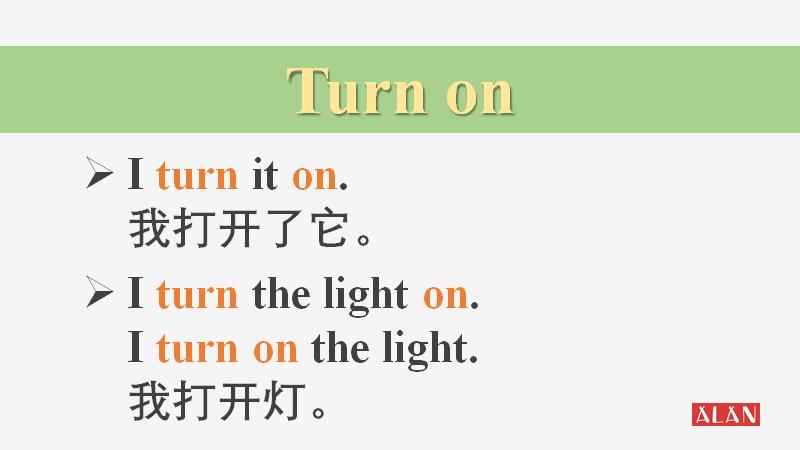 第一个句子是宾语是代词it,所以必须在谓语turn和副词on的中间;而第二三个句子,宾语是名词词组the light,所以在on的前面后者后面都是可以的。你学会了吗?