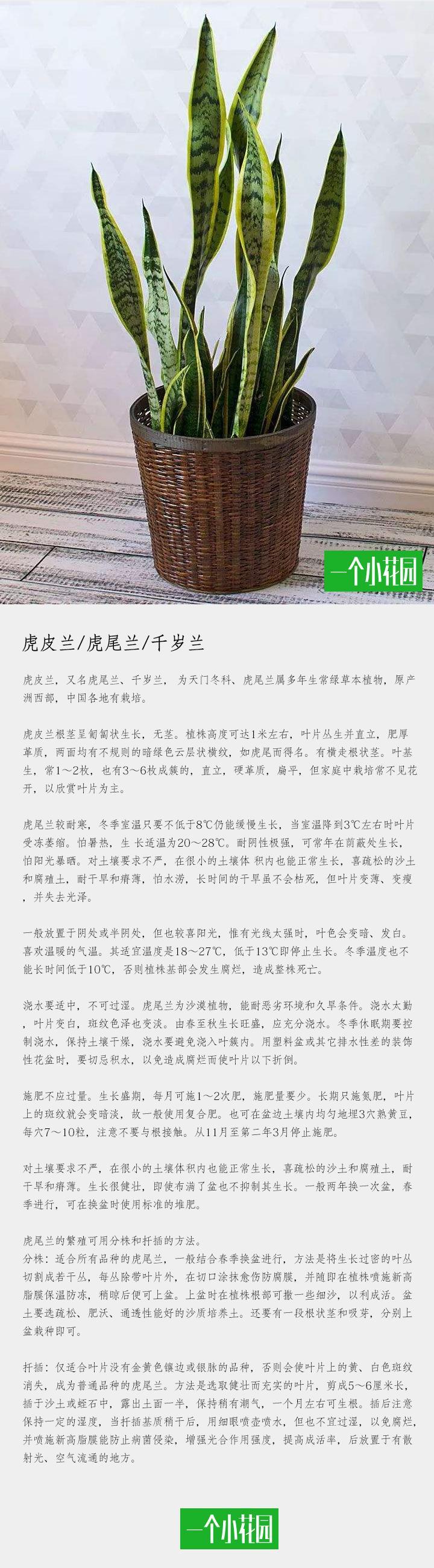 虎尾兰的繁殖可用分株和扦插的方法。