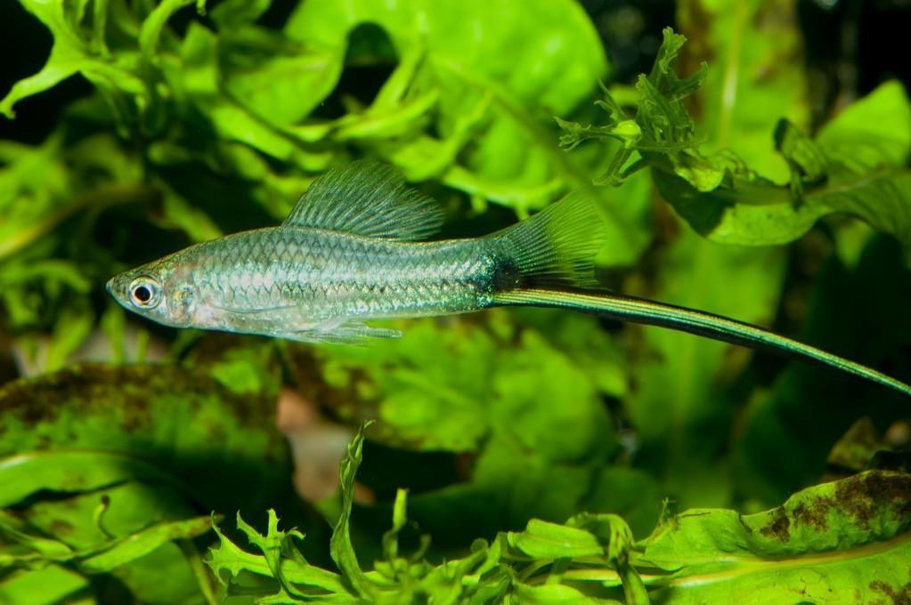 剑尾鱼别名剑鱼、青剑。剑尾鱼在水温20—25℃,弱酸性、中性或微碱性水中都能正常生长和繁殖,最适生长水温为22—24℃,杂食性,性格温和,易和别的热带鱼混养。剑尾鱼6~8月龄性成熟,每隔4~5周繁殖1次,每次产鱼苗20~30尾,适宜繁殖的水质为pH7—7.2,硬度6~9度。剑尾鱼的生理发育有性逆转现象,完成性转化的鱼具有雄性的习性和功能,繁殖方法与孔雀鱼相似。