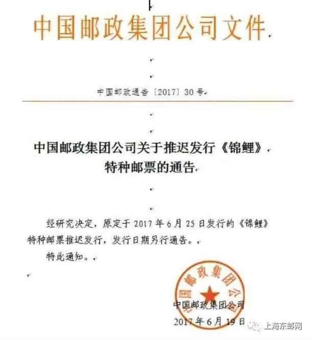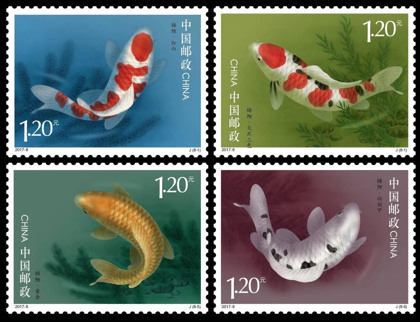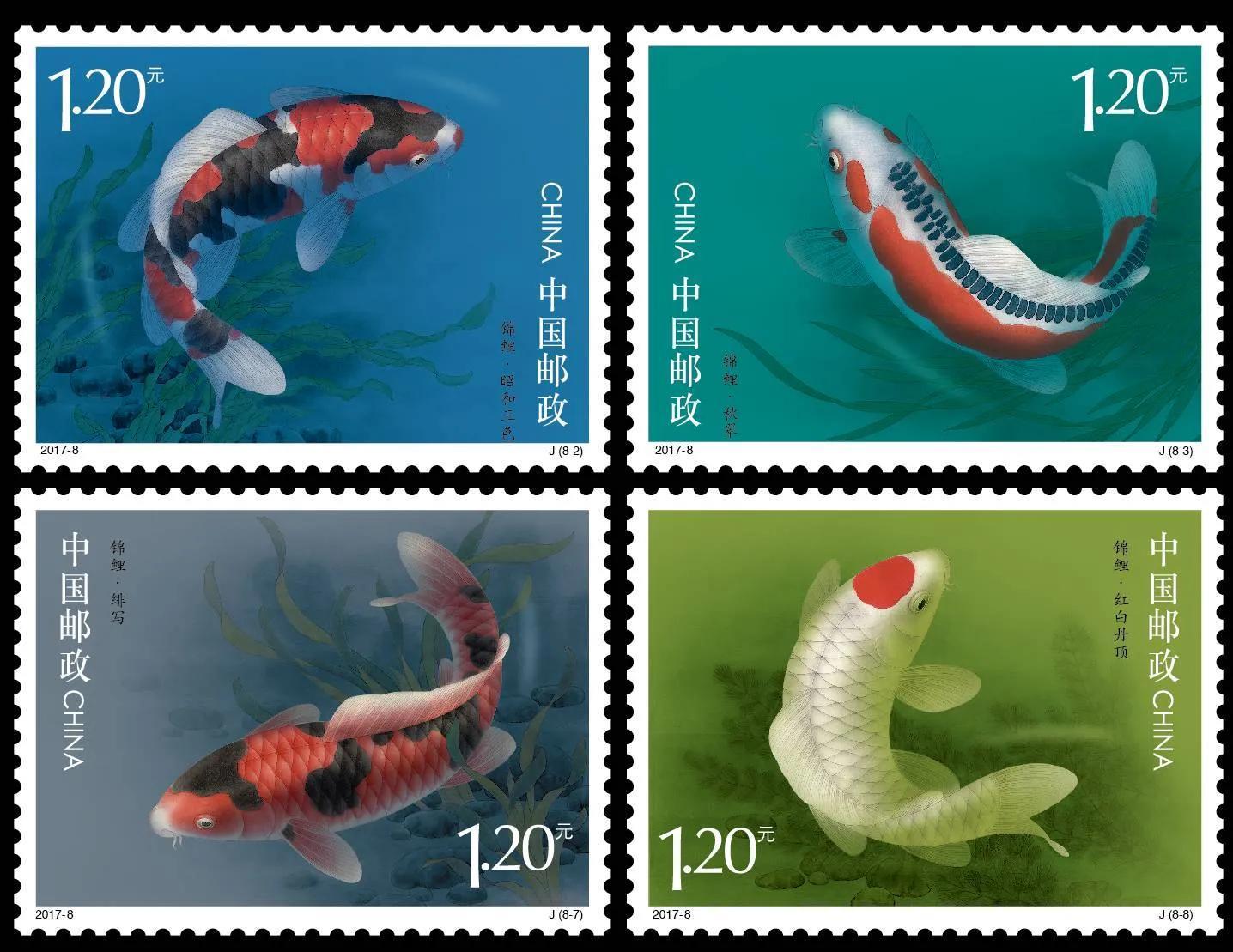 中国邮政定于2017年6月25日发行《锦鲤》特种邮票1套8枚。详情如下: