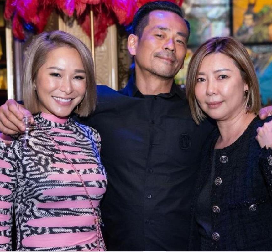 而在陈慧琳旁边则是她的干妈,当天生日party的主角windy。当天的windy身穿一件十分华丽的服装,整个服装也非常的有设计感,衬托的她整个人的气色很好。不知是由于站在干女儿陈慧琳身边压力太大的缘故,当天的windy也选择了一双和陈慧琳同样的非常高的高跟鞋,两人站在一起真的是让人大饱眼福。相对陈慧琳来说,当天的洗米华穿着就简单多了,他只选择了一件简单的黑色衬衫,似乎决定做个不引人关注的存在。夫妻两人一同和干妈合照,三人看起来都十分愉快。