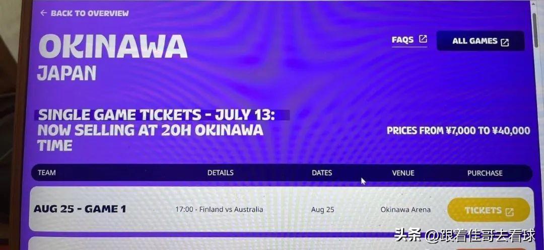 日本赛区:单场票价为7000-40000日元(约合人民币362-2069元)不等。